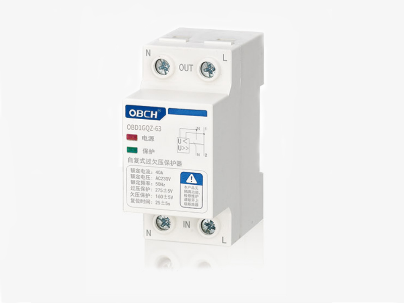 The OBD1GQR/OBD1GQZ self recovering overvoltage and undervoltage protector is a new generation of home appliance protection device developed by our company based on the current power supply situation.It can provide protection in case of abnormal voltage.When the mains voltage exceeds or fall below the operating voltage value of the protector,the protector can quickly and reliably cutoff the load power supply to protect electrical appliances and personal safety. When the mains voltage returns to normal,the protector automatically connects to the power supply,restoring power and achieving fully automatic control It has the characteristics of simple and convenient use, stable and reliable performance.The product has a compact structure,beautiful appearance,and is installed in parallel with DZ47S.The product complies with the JB/T12762 standard for self recovering overvoltage and undervoltage protectors.
